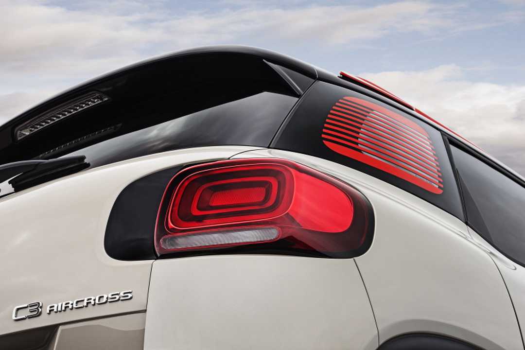 Узор задних боковых окон Citroen C3 Aircross и 3D-оптика задних фонарей