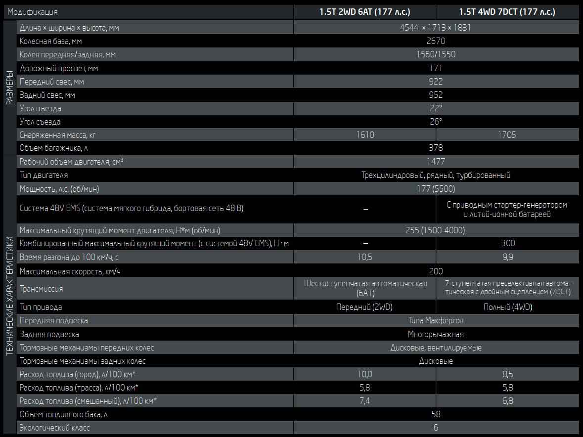 | Volkswagen Taos | объём 1,6 литра бензиновый мощность 110 л. с. крутящий момент 155 Нм | 5МКПП 6АКПП |