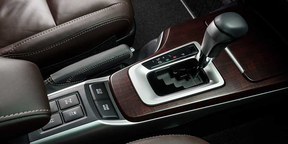 Тоннель имеет большой бокс для мелочёвки, где располагаются также подстаканники. Недалеко заметен довольно массивный селектор КПП, правее от которого разместили стояночный тормоз механического типа. Между передними кресла стоит подлокотник. Для передних седоков японцы предусмотрели отличные кожаные сиденья, оснащённые небольшой боковой поддержкой.
