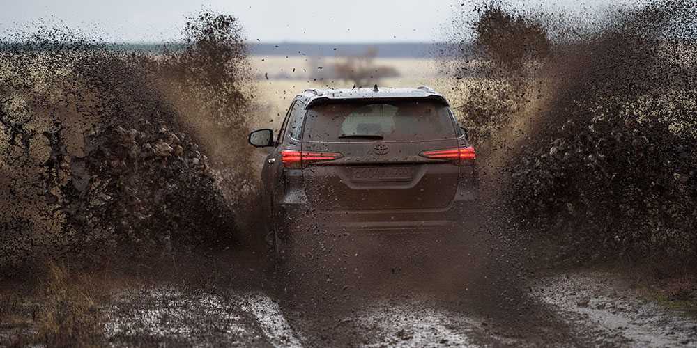 Глубина преодолеваемого брода – 700 мм. Клиренс равен 225 мм, угол въезда – 29 градусов, угол съезда – 25. С завода Fortuner поставляется с двумя типами резины: это шоссейные шины на машинах со стальными колёсами и литыми 18-дюймовыми дисками, и зубастые All-Terrain, которые идут в паре с 17-дюймовым литьём.