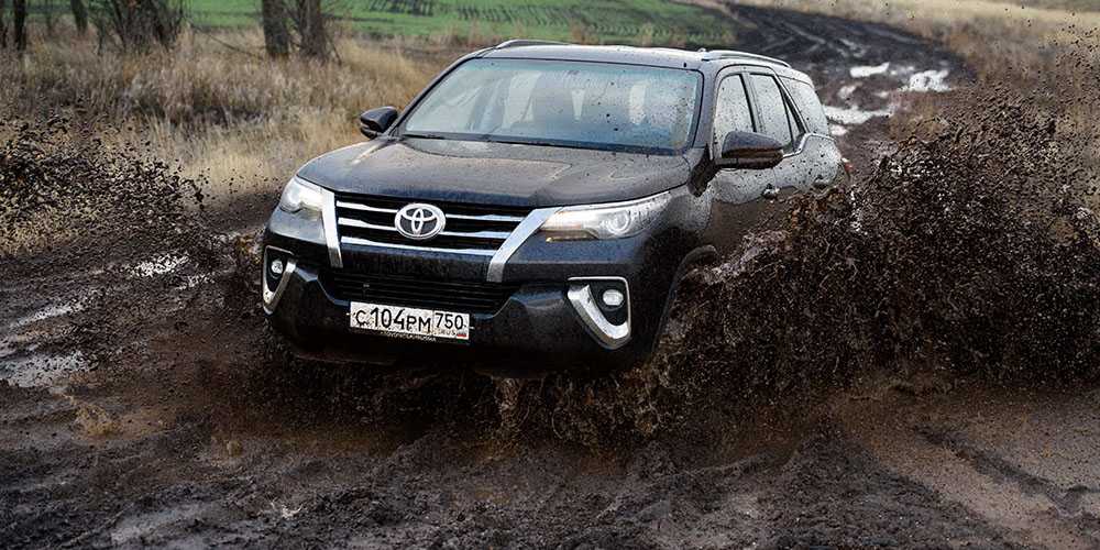 Отключается передняя ось и вовсе секунды за две. Вторая причина – трансмиссия действительно не греется. По крайней мере с постоянным движением по заснеженным дорогам на скорости за 100 км/ч проблем не возникло. Третья причина – Fortuner в режиме 4H не так и плохо управляется. Конечно, баланс управляемости смещается к недостаточному, но, повторюсь, машина очень хорошо реагирует на сброс газа, поэтому заправить её в поворот проблем не составляет. Но главное в Fortuner – это, конечно, не его «вкусная» управляемость и невозможность дубасить по грунтовке на запредельных скоростях, а проходимость. Плач любителей внедорожных вылазок слышен по всей стране, ведь на рынке остаётся всё меньше настоящих проходимцев.