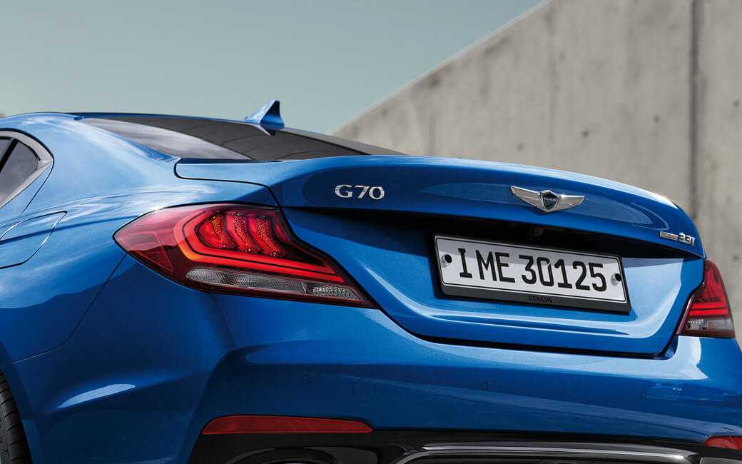 Задняя часть Дженезис G70 2020 может похвастаться спортивным диффузором с двумя патрубками выпускной системы, а также оригинальными габаритными огнями и стильной крышкой багажного отделения. Корма люксового седана тоже похожа своими фонарями на стиль Mercedes. Крышка багажного отделения по некоторым причинам была задрана высокой для придания машине некой мукулистости и купеообразности, ведь это как ни как собрат KIA Stinger.