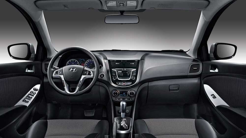 Существует два полных комплекта разъёмов для детских сидений. Solaris хорошо выглядит внутри, несмотря на довольно простую конструкцию салона. Есть много твёрдого пластика, но, в отличие от некоторых конкурентов, он не делает Solaris дешёвым. Почти 400 л. грузового пространства Solaris дают вам достаточно места для более чем 10 сумок в багажнике. Это неплохо, но некоторые конкуренты предоставляют больше места. Выделяется центральный сенсорный экран, который управляет функциями аудио и телефона, а также легкодоступные настройки климат-контроля. Лучше пропустить базовую модель по нескольким причинам, в том числе из-за того, что здесь руль имеет только наклонный механизм, а не телескопический, как в более дорогих версиях.