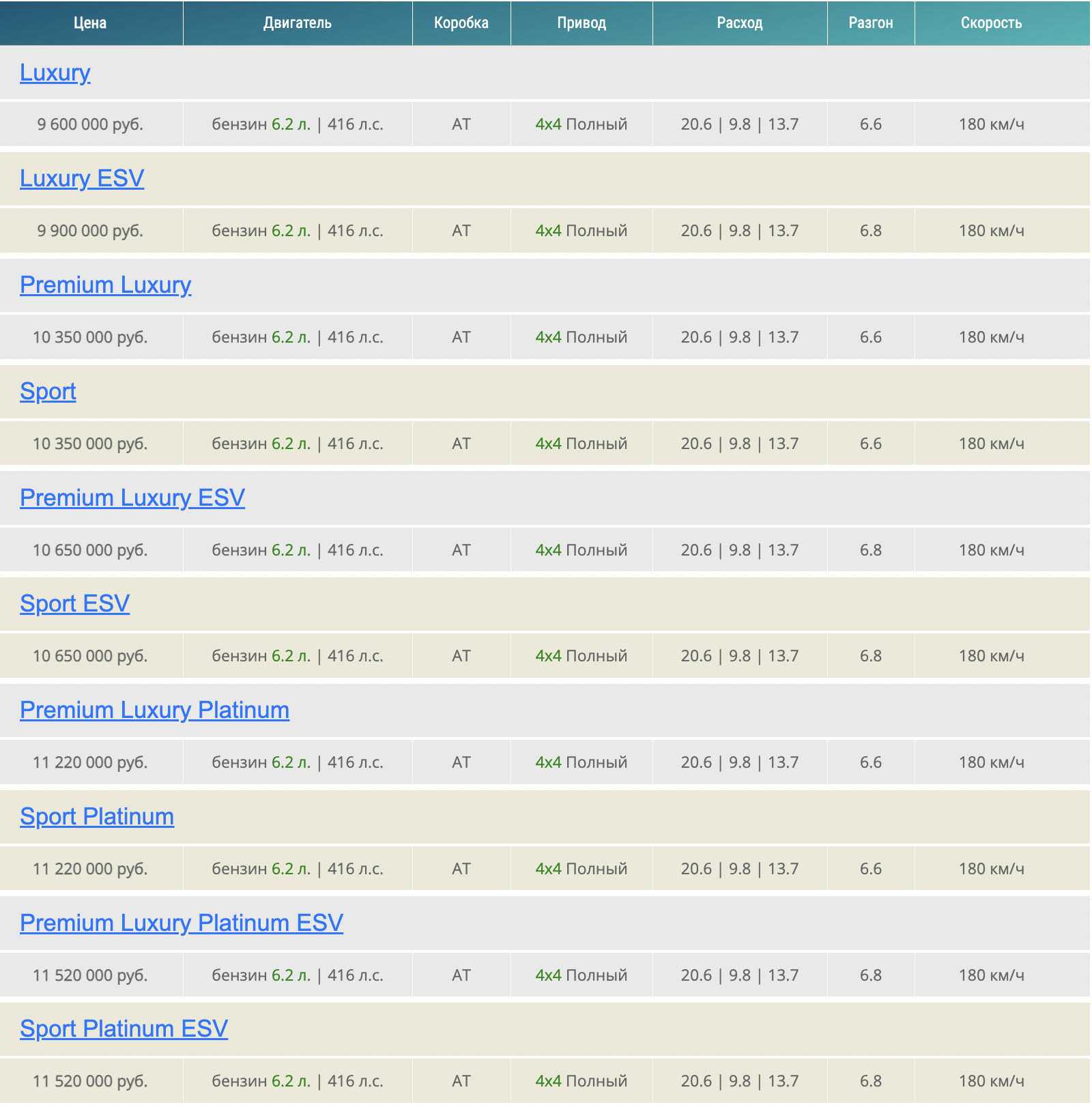 | ESV Sport Platinum | От 9 599 000 руб. |