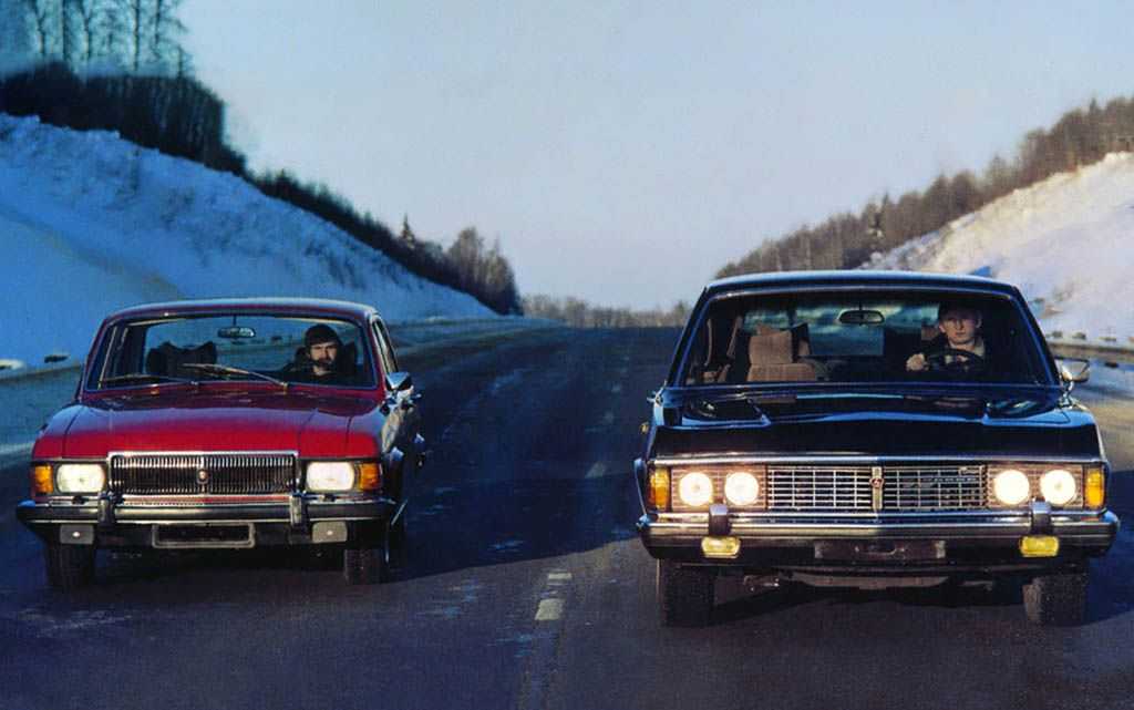 ГАЗ-3102 (слева) и флагман Горьковского автозавода ГАЗ-14