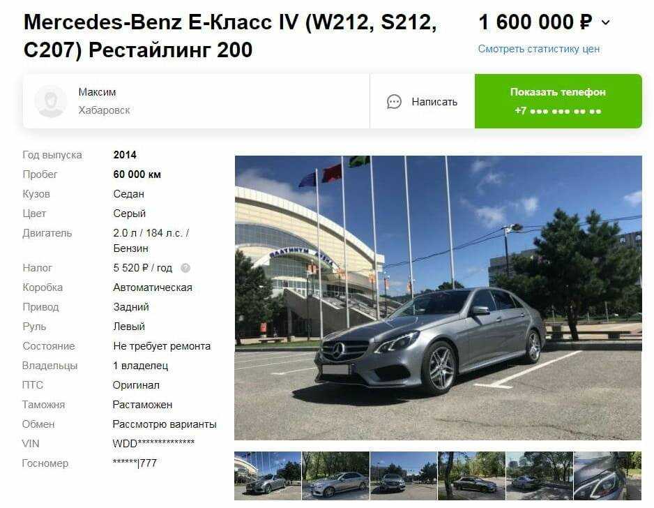 За 1,6 млн рублей нашелся «Мерс» 2014 года с пробегом 60 тыс. км: