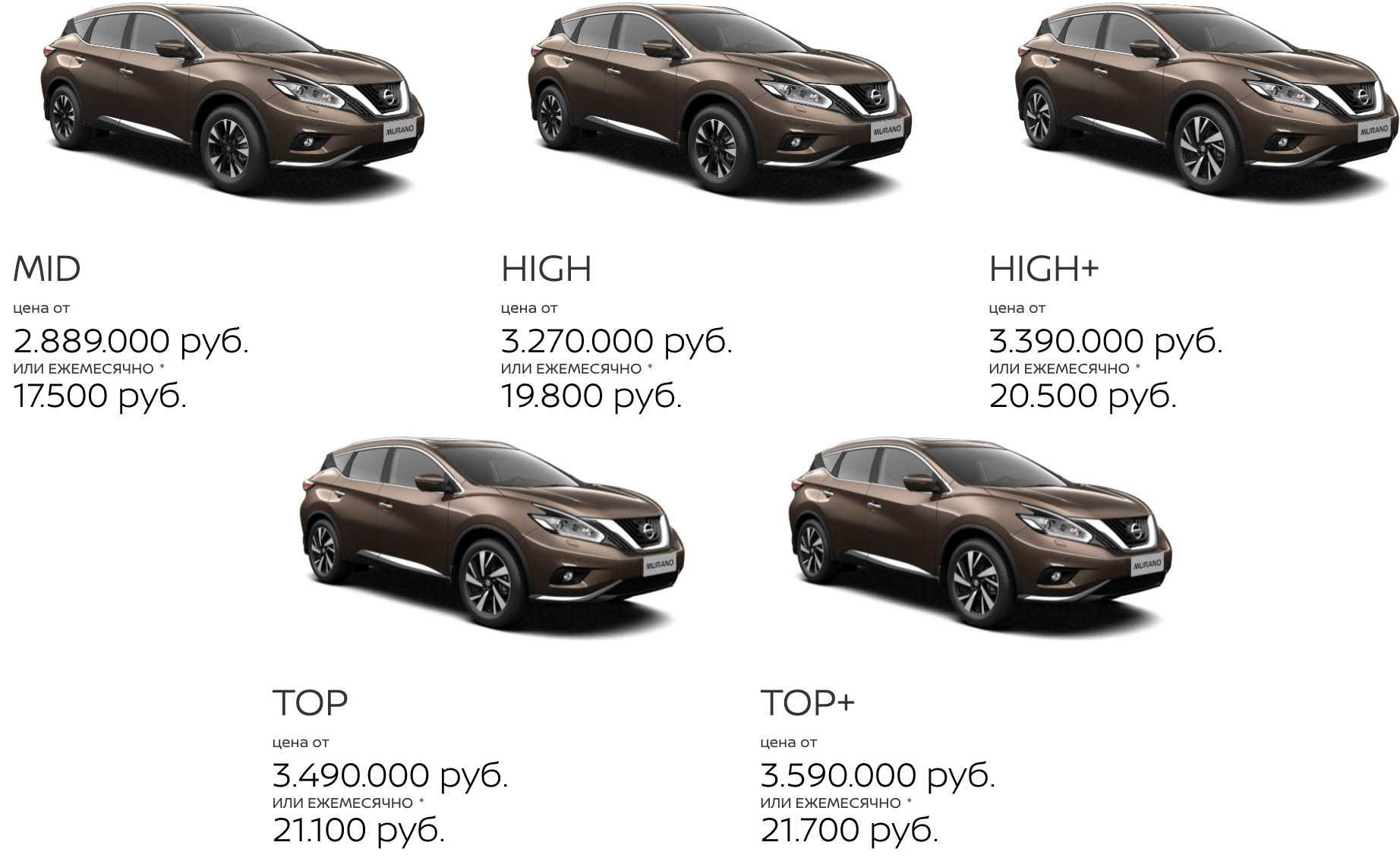Что же касается Nissan Murano, то тут перечень комплектаций скромнее: