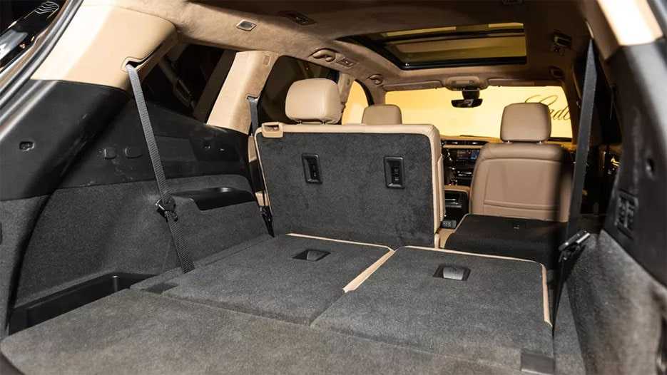 Второй ряд сидений Cadillac XT6 может быть подобно первому, из двух раздельных сидений, или же выполнен в виде дивана на три посадочных места. Если с двухместным вариантом понятно, то на три места пропорция складывания 40/20/40. В любом случае свободного пространства предостаточно, как для дальних поездок, так и пассажиров высокого роста. Третий ряд сидений Кадиллак XT6 в любом варианте рассчитан только на два посадочных места и в случае необходимости можно сложить в пропорции 50/50, тем самым увеличив свободное пространство для багажника.
