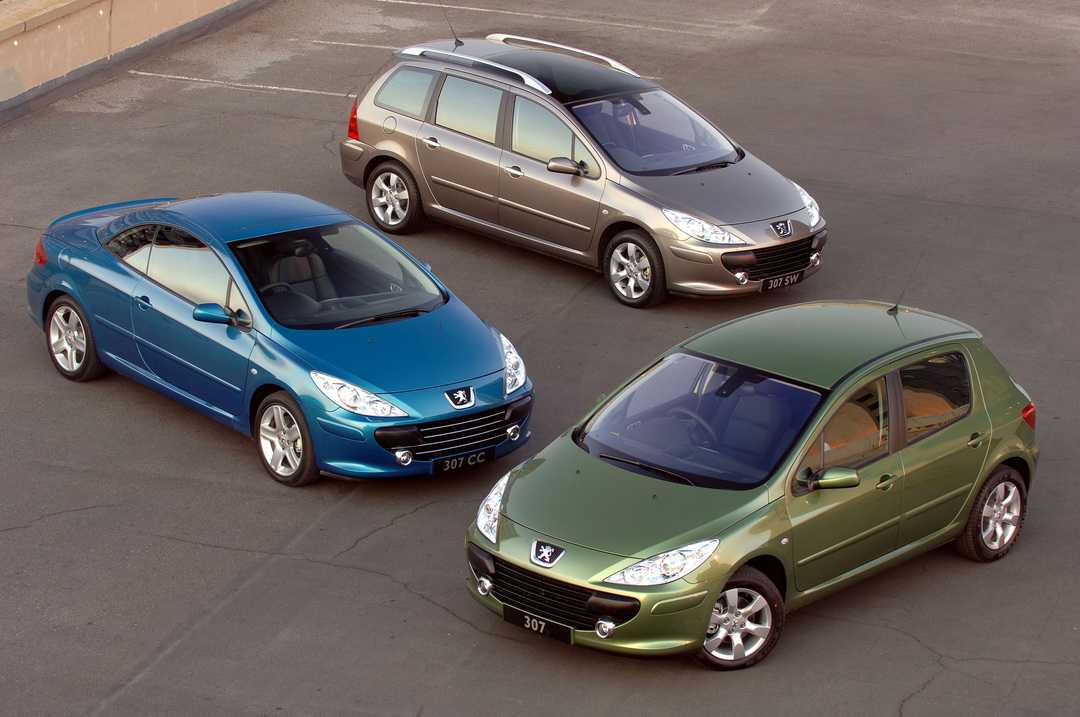 Гамма вариантов Peugeot 307 2007 г., все после рестайлинга. Peugeot 307 SW стал первым в мире стандартно комплектуемым прозрачной крышей автомобилем