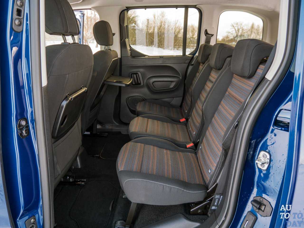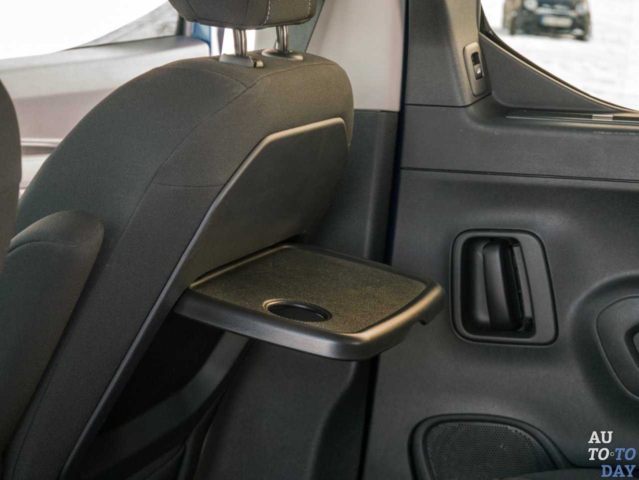 Над головой водителя находится знакомая по многим коммерческим автомобилям полка для документов и прочих мелких вещей. Сидящие сзади не только оценят достаточное пространство для ног, но и мелкие фишки, помогающие не скучать в дальней дороге: столики с подстаканниками, шторки на окнах, полностью опускающиеся задние окна и пр. На тестовом автомобиле каждое из трех задних кресел можно сложить отдельно. Правда, полностью их демонтировать не получится. В таком ограничении трансформации и кроется главное отличие от коммерческих модификаций Opel Combo.