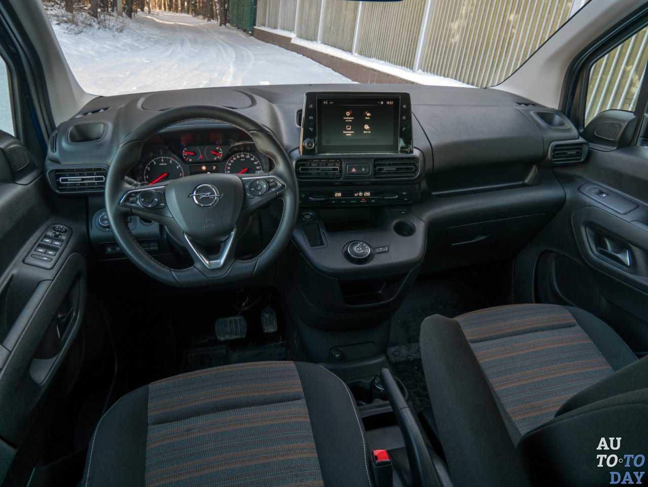От близнецов под французскими марками такой Opel отличается лишь решеткой радиатора и шильдиками. Пассажирская версия предложена только в «коротком» пятиместном варианте длиной 4380 мм. На втором ряду стандартно установлены три раздельных кресла с индивидуальными регулировками, объем багажника — 675 литров под полкой и 3000 литров со сложенным задним рядом. У российских машин предусмотрена металлическая защита двигателя, а паспортный дорожный просвет — 175 мм.