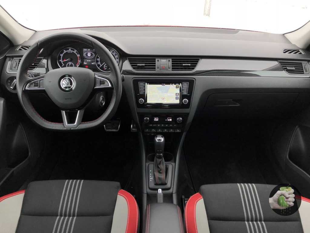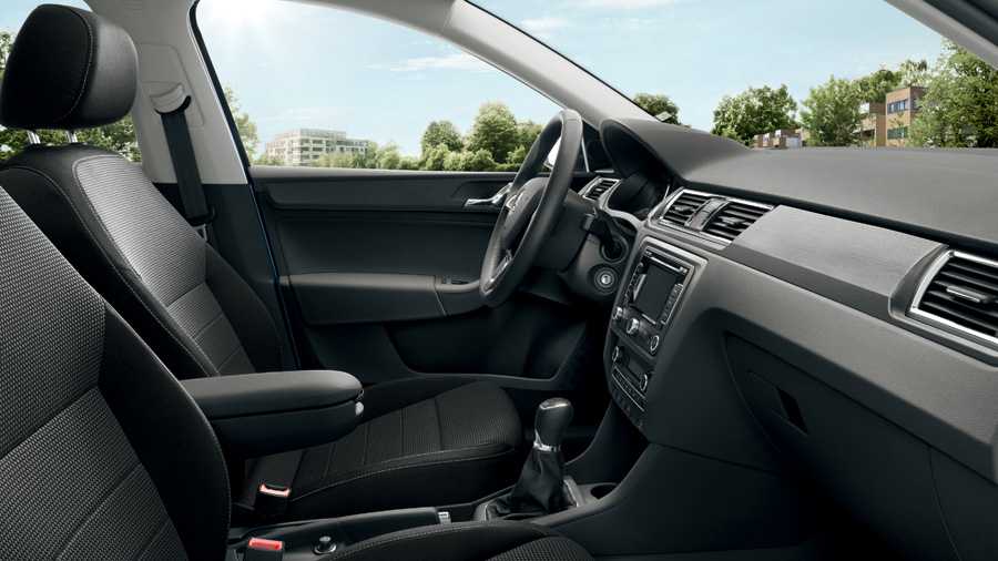 В салоне изменений больше. Модернизированная приборная панель Шкода Рапид стала высокоинформативной. Были изменены блоки управления микроклиматом, дефлекторы и оформление дверных карт. В центре панели красуется сенсорный дисплей мультимедиа. Допускается дополнение разными опциями: соединение с мобильными устройствами, выход в интернет, система навигации ЭРА-ГЛОНАСС и пр.