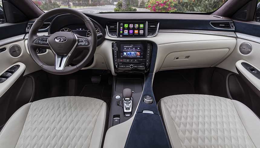 Архитектура салона новинки Инфинити имеет полное и качественное оснащение, внутри время летит незаметно. Поэтому поездки на дальние расстояния не принесут неудобств. Рассмотрим более подробно внутреннее оформление интерьера.