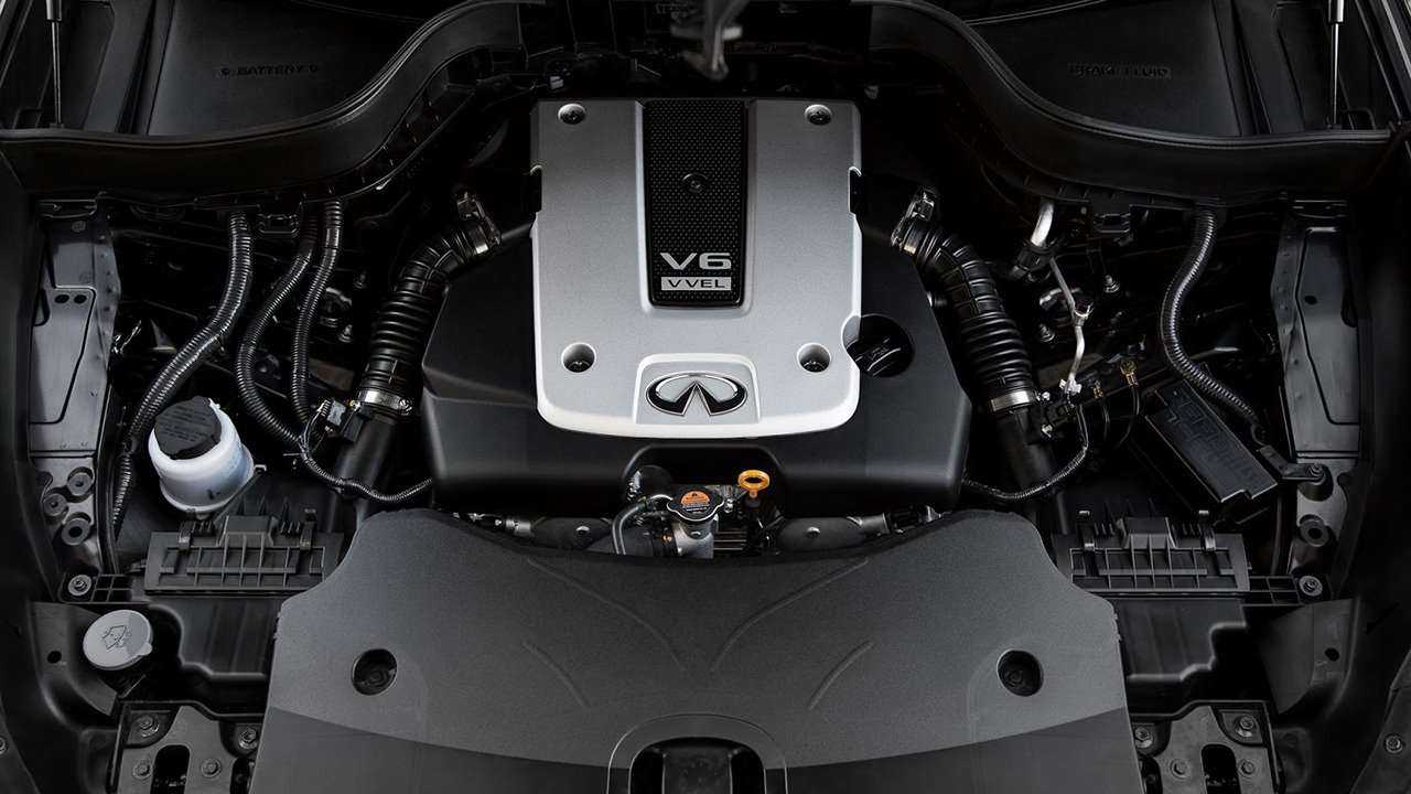 - Самым слабым мотором является турбо дизель (diesel 30d). 3-х литровый V6 выдает 238 лошадиных сил и 550 H*m крутящего момента, позволяющие разгонять автомобиль до сотни за 8,3 секунды. Дизель соответствует нормам Евро-4, употребляет литров 11 топлива по городу и является самым лучшим по надежности. Агрегат Infiniti QX70 получил систему непосредственного впрыска и на данный момент авто с ним может набрать 212 км/ч максимум.