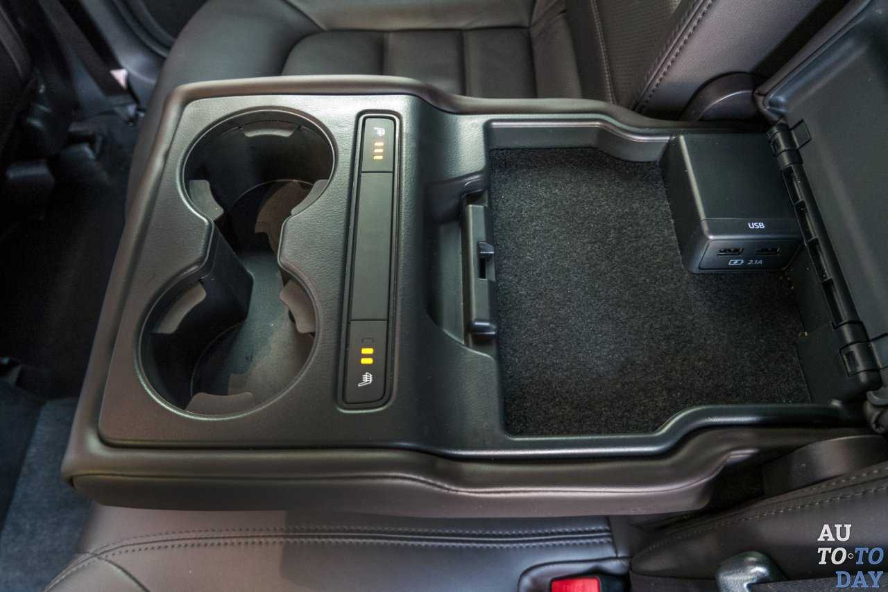 - Управление подогревом задних сидений спрятано в подлокотнике.