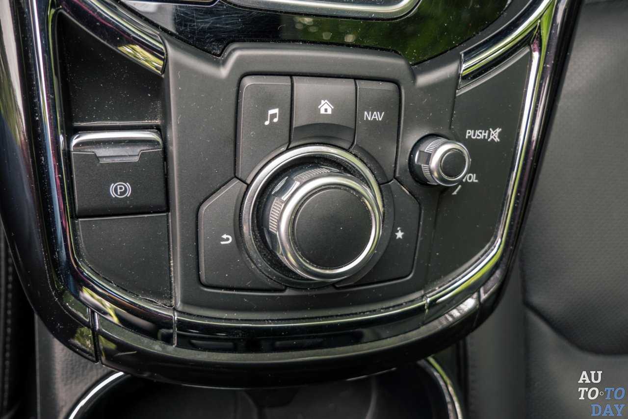 Интерьеры всех современных «Мазд» похожи, как две капли воды. Но японские дизайнеры и инженеры все же попытали немного выделить своего флагмана. В первую очередь, в глаза бросается широкая полоса из полированного алюминия на торпедо, идея которой продолжается на дверных картах. Также от меньших кроссоверов салон героя нашего теста выгодно отличается широким двухсоставным подлокотником, к которому не нужно тянуться локтем. 8-дюймовый дисплей с хорошо знакомой серо-красной графикой на скорости свыше 8 км/ч перестает быть сенсорным, и все управление передается на блок джойстика и клавиш на центральном тоннеле. Аудиосистема Bose создает торжественную атмосферу в салоне, позволяя настроить звук в конкретной зоне (спереди, или сзади).