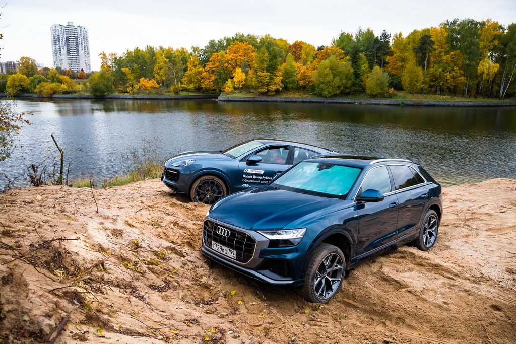 Оценив возможности соперников на роликах, мы решили проверить их в настоящем деле. Суровое бездорожье с жирной глиной и колеей штурмовать не будем. Речной песок достаточное испытание для экзальтированных особ. Это те условия, в которых геометрическая проходимость вкупе с умной электроникой смогут проявить себя. Усложняет испытания абсолютно дорожная, низкопрофильная резина, фактически, слики. Обе машины с честью прошли проверку песчаной пересеченкой. Клиренс у Порше чуть меньше, но возможности электроники на высоте, он без проблем преодолел препятствие. По Ауди были опасения, ведь машина не съехала с роликов. Но в песке проблем не возникло. И главное — никаких перегревом на экранах не высветилось!