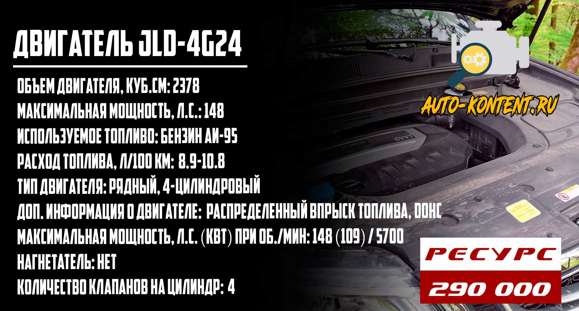 Мотор чувствителен и склонен к перегревам. Особенно рабочая температура повышается во время продолжительных поездок. По возможности стоит избежать длительных высоких нагрузок на мотор. Серьезный недостаток JLD-4G24 – слабая и недостаточно надежная головка блока цилиндров. Как уже было сказано выше, цепь растягивается довольно быстро, вместе с ней придется менять натяжитель, успокоитель и ролик. Ресурс мотора – 290 тыс. км, но это потолок. В среднем его потенциал рассчитан на 250 тыс. км, это более реальная цифра для данного мотора. Но если постараться, бережно относиться к автомобилю и силовому агрегату в частности, вполне реально пройти под три сотни тысяч километров.