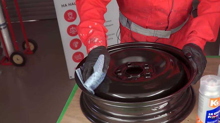 - Обезжирить поверхность литого диска и высушить салфеткой;