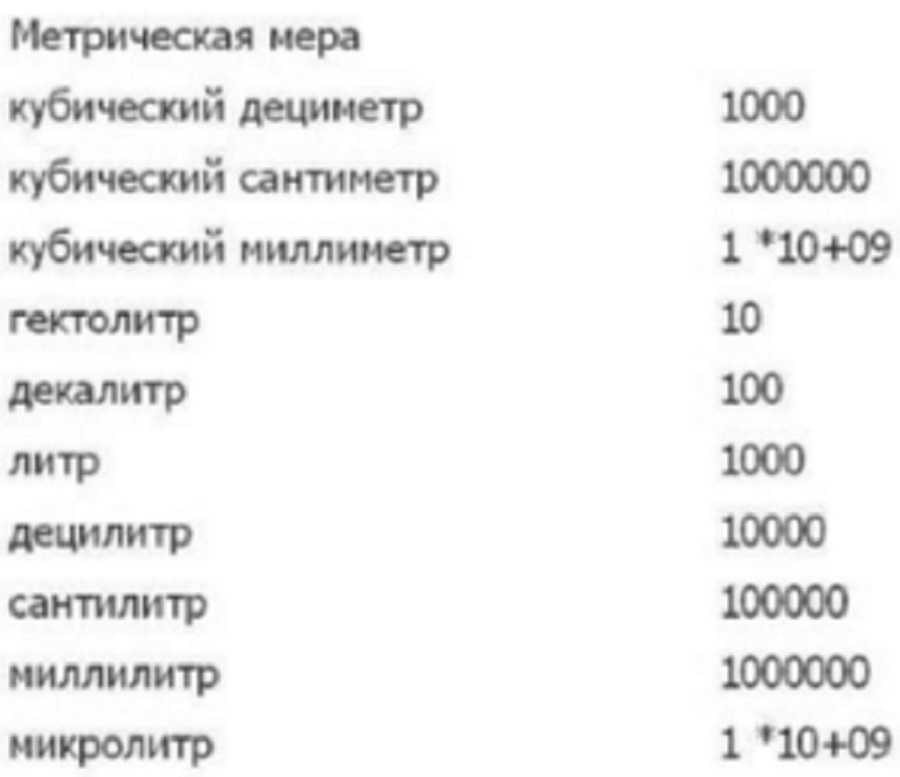 Для газообразных, жидких и твердых тел объёмы переводятся в таких соотношениях: