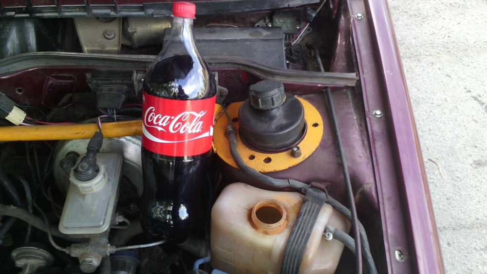 После этого, предварительно купив в продуктовом магазине 2 литра кока-колы, можно посредством специально приготовленного шланга, «надетого» поверх входа агрегата, сквозь лейку поместить кипяток внутрь агрегата. В систему следует влить столько жидкости, сколько поместится.