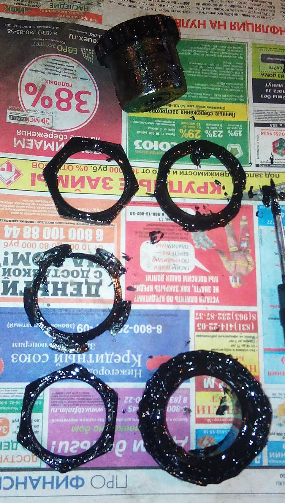 10. Отмываем от остатков старой смазки11. Выбиваем обоймы подшипников…12. Первую выталкиваем внутреннюю обойму13. Снимаем стопорные кольца… их две штуки . они опорные для обойм подшипников14. Обойму наружного подшипника выталкиваем внутрь ступицы… просто ставим остатки внешнего подшипника и стукаем тупым предметом…15. Дополнительно промываем ступицу от отложений и жыжы… тщательно убираем грязь из пазов под стопора…16. Для установки используем подшипники с обоймами. Номер подшипника 127509