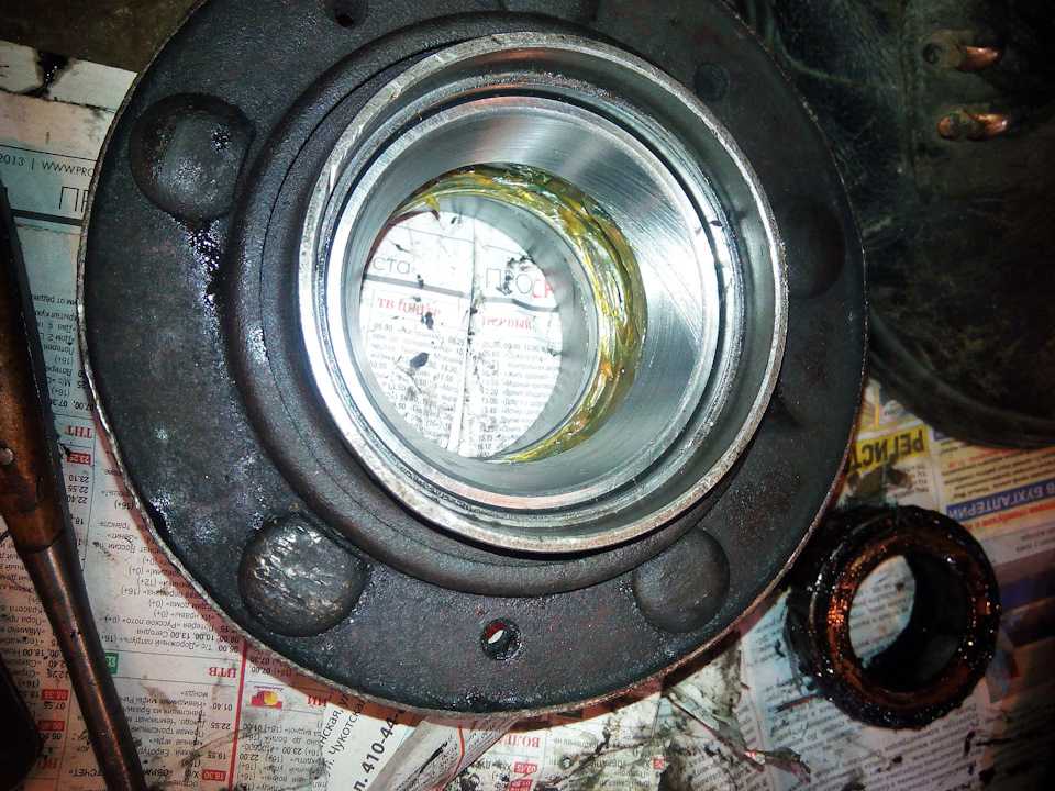 9. С внутренней стороны ступицы вынимаем сальник/пыльник и вытряхиваем остатки подшипника