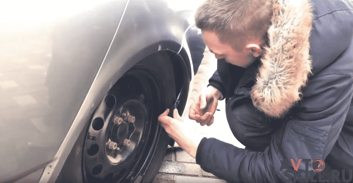 Чтобы было удобно работать, колеса надо повернуть влево или вправо, в зависимости от стороны демонтажа.