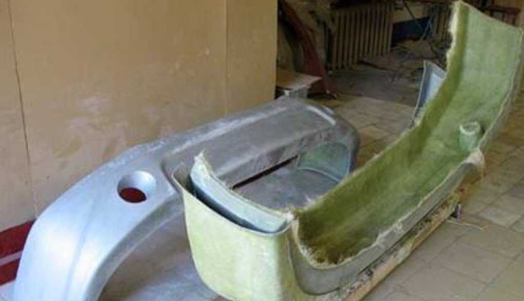 Большой объем работ выполняют из стекломата. Порошковый стекломат добавляют отдельными слоями для создания более крепкой конструкции. Побочный эффект – увеличение веса. Стекловуаль является самым легким и гибким материалом для изготовления бампера авто, поэтому ее наносят на наружный слой и в местах, где важен рельеф.