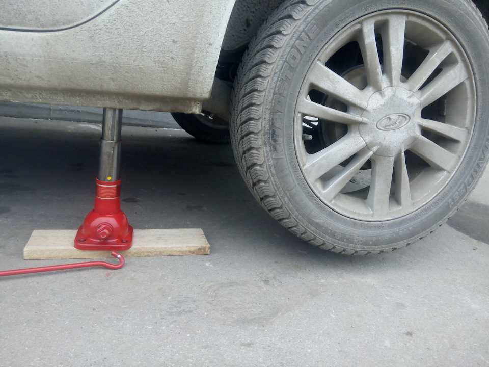 - В том случае, если автомобиль застрял в грязи, будет разумно перед установкой домкрата подложить определённую опору.