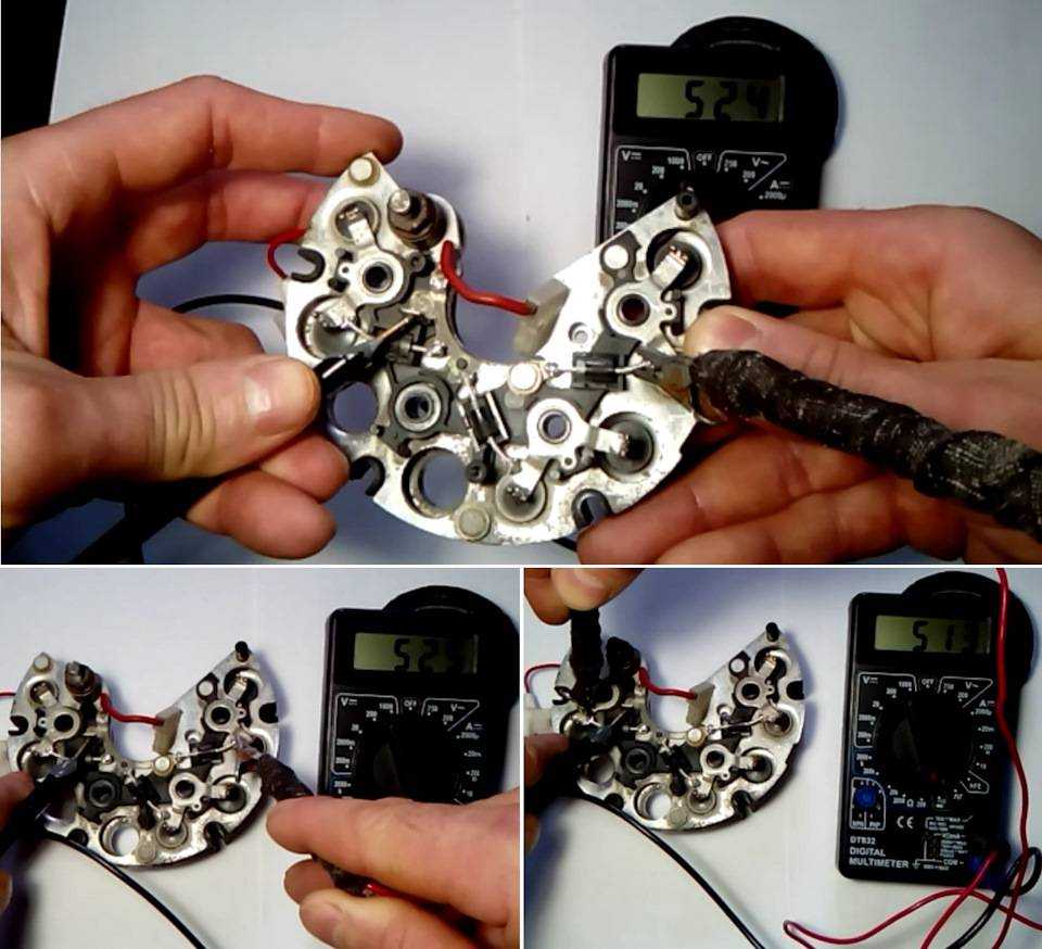 В отличие от прочих узлов «электростанции авто», визуальный осмотр не позволяет выявить, какие имеются неисправности диодного моста генератора. Для выпрямителя необходима только аппаратная диагностика мультиметром.
