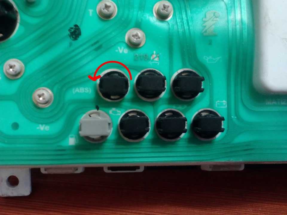 Также, важным моментом может оказаться перепайка проводка от лампы подсветки с «плюса» на свободную контрольную лампу, располагающуюся возле индикатора включения Теперь можно, при наличии ещё двух свободных индикаторов на приборной панели, задействовать их управление при помощи «плюса», так как в штатном варианте они бы управлялись «минусом». Для этого нужно обрезать небольшую часть дорожки, которая подаёт этот самый «плюс» и припаять туда проводок с общим «минусом», относящийся к индикатору света фар. После таких нехитрых переделок, включаться они будут после подачи на них именно «плюса». Речь идёт об индикаторах антиблокировочной системы, а также подушек безопасности.