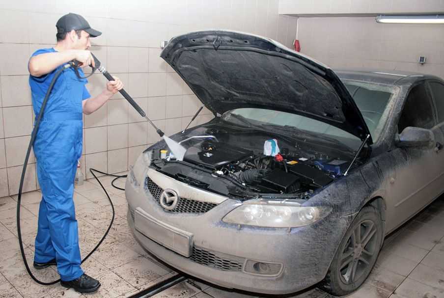 - Паровая мойка. Она проводится профессиональными автосервисами и требует особого оборудования. В домашних условиях выполнить эту процедуру затруднительно. Кроме того, горячий пар может убить силовую установку, если направить его струю «не так» и «не туда».