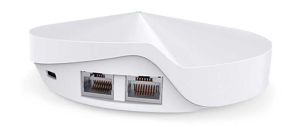 У каждого модуля три разъема: под два гигабитных Ethernet и питание. Подключать сетевой кабель можно к любому порту. Все роутеры работают от сети, а один из модулей соединяется напрямую с интернетом. Режим работы можно узнать по состоянию диода в центре устройства — если он горит зеленым, значит Wi-Fi сеть успешно работает.