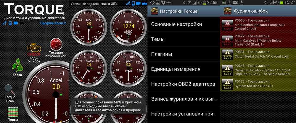 Работают они по схеме. Устройство подключается к разъему, включается зажигание и начинается процесс диагностики. Данные поступают от датчиков фаз на ЭБУ. От него на мобильное устройство, на котором предварительно должно быть установлено специализированное программное обеспечение.