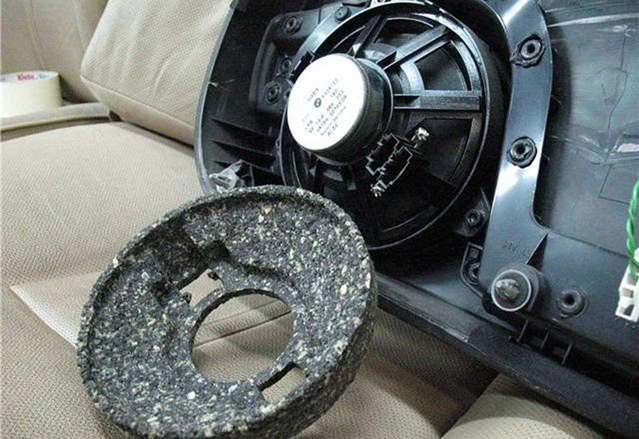 Понятно, что аудиосистема — далеко не приоритетный элемент при проектировании автомобиля, но иногда способы установки штатных динамиков просто удивляют. На фото — штатный динамик BMW, который был закреплен просто с внутренней стороны обивки и прикрыт легким кожухом