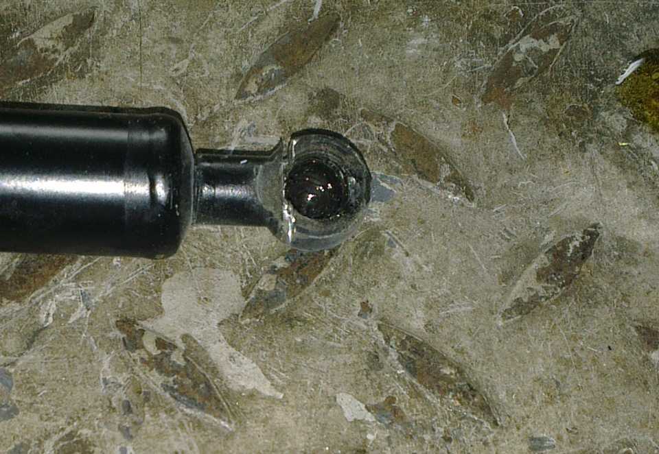 Освобождаем шарнир, и примеряем к новым амортам. Перед конечной установкой, желательно смазать место под шарнир какой либо смазкой, в своем случае использовал ШРУсовую смазку LIQUI MOLY LM 47, осталась от предыдущих машин.