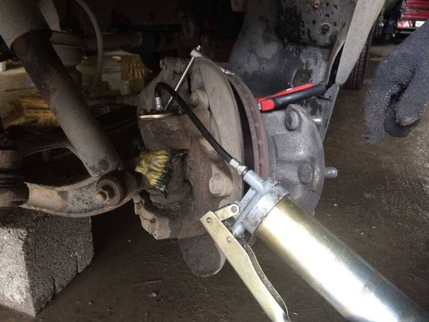 - Осмотрите машину около колеса и найдите пресс-масленку – аккуратно наполните ее смазкой. Потом найдите нижнюю масленку и наполните ее до краев.