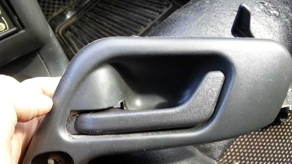 С новой ручкой усилие открытия двери возросло, она явно не натягивала тягу как положено. Как же заколебало качество запчастей.Скорее всего новая ручка работает плохо из за того, что отверстие под тягу заметно больше, чем на оригинальной. Зачем это сделано мне не понятно, может быть есть десятки с более толстыми тягами, а может просто сделано «на отцепись».