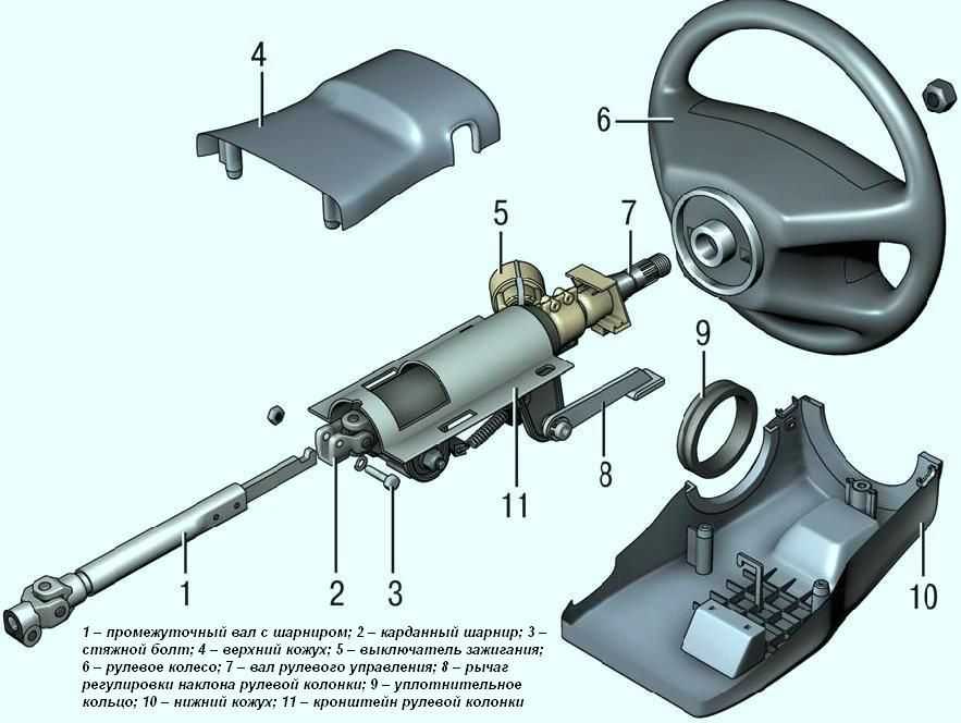 Рулевая колонка поддается только одной регулировке, при выходе из строя наиболее оптимальный вариант — полная его замена.