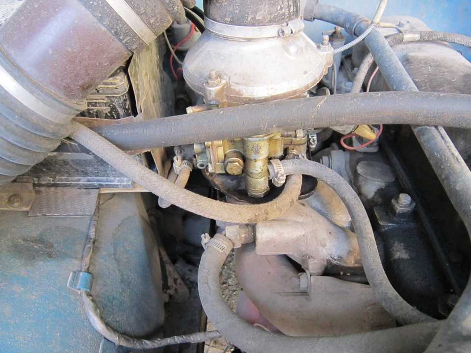 Смесь при пуске холодного двигателя надо обогащать, поэтому в карбюраторе установлена воздушная заслонка с ручным приводом через тросик из кабины. При вытягивании подсоса воздух в первую камеру перекрывается, а дроссель немного приоткрыт, что обеспечивает требуемый состав.
