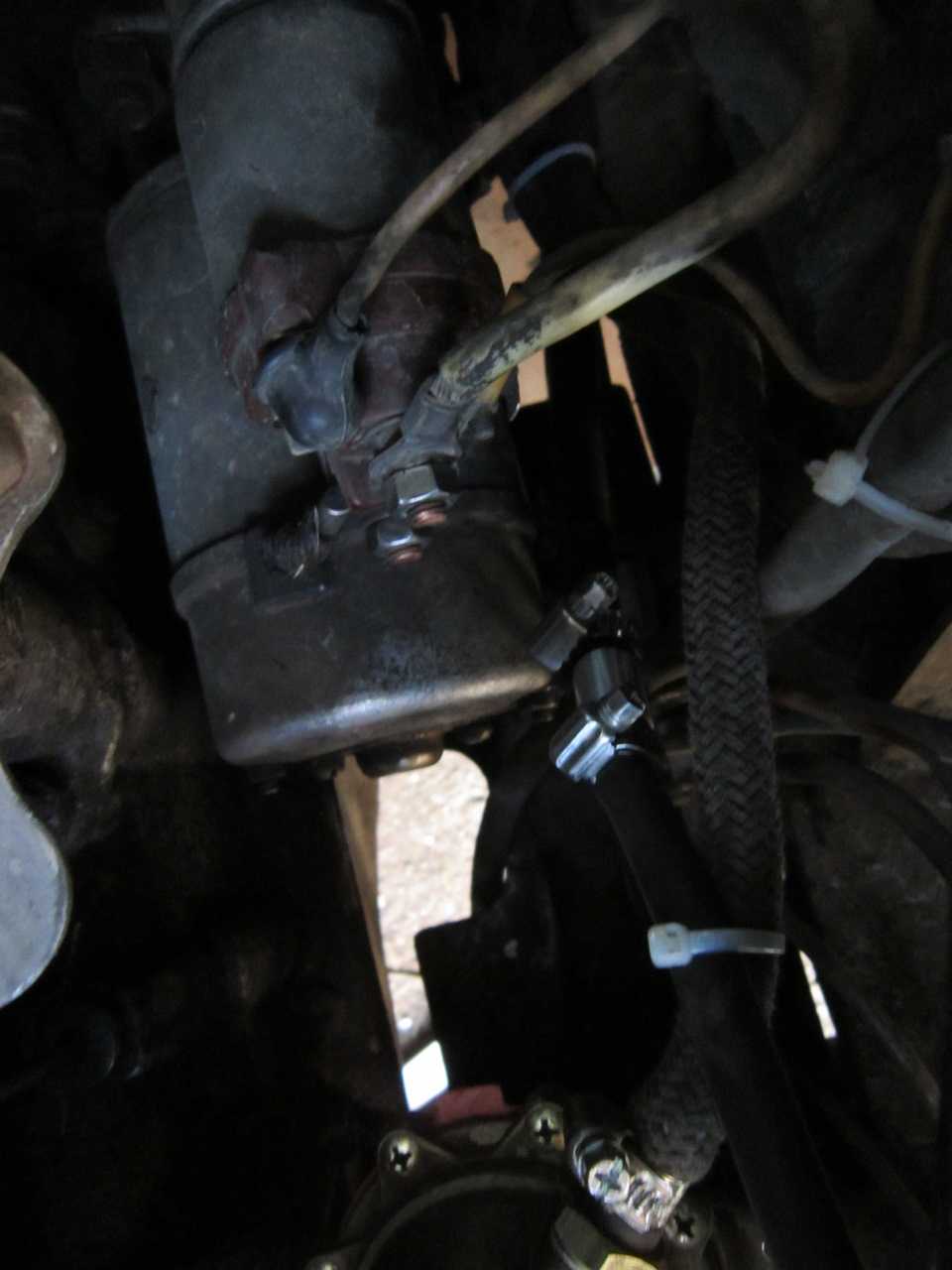 - отыщите шланг обратки и аккуратно передавите его пассатижами на работающем моторе;