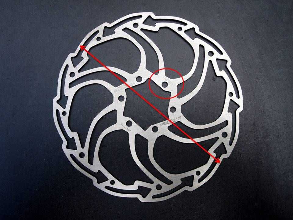 Есть несколько стандартных диаметров тормозного диска (140мм, 160мм, 180мм и 203мм) и несколько менее распространенных (170мм, 185мм, 200мм и 220мм). На кантрийные велосипеды чаще всего ставят диски 160мм, иногда для переднего тормоза используют размер 180мм, а для заднего – 140мм. В даунхилле и эндуро тормозить нужно больше, в ходу диски 180мм и 203мм. Как правило, размер указан на самом диске. Если надписи нет, или она не читается, можно измерить диаметр линейкой.