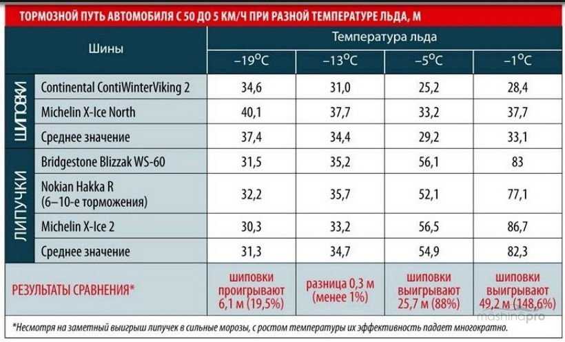 - Тормозной путь шипованных покрышек на обледеневшей трассе значительно короче.